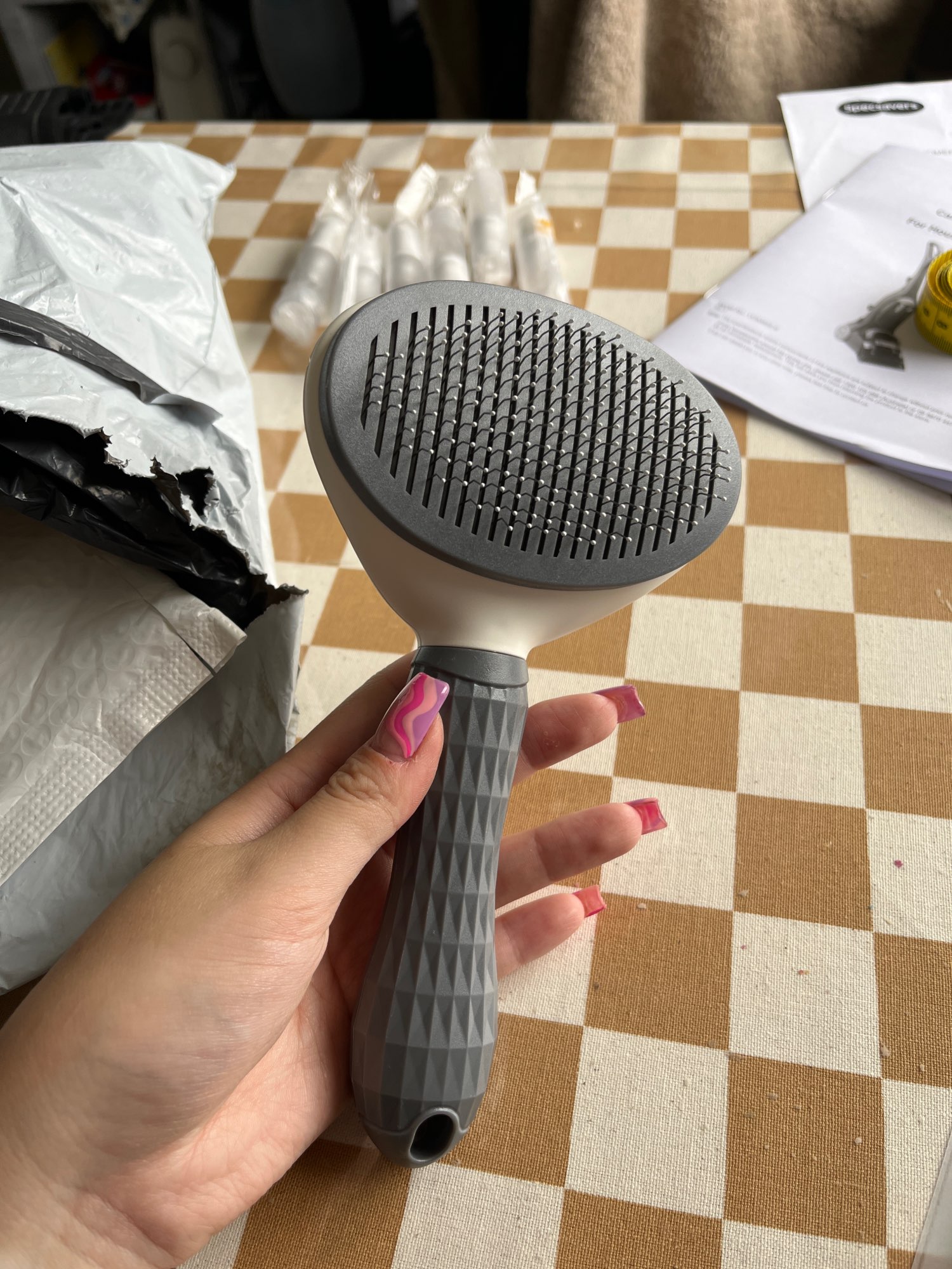 I wish the metal brush hairs were a little longer, however it works great on deshedding and easy to remove the hair. A must have for shedding pets. A little slow on shipping but i did receive it and would recommend.